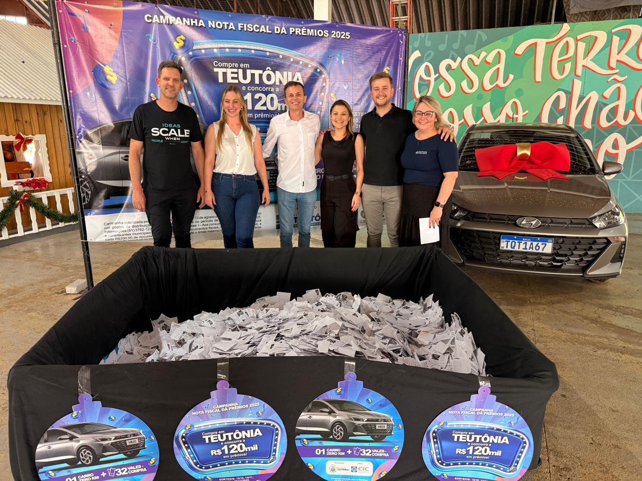 Com a participação de mais de 145 empresas, a campanha distribuirá no total R$ 120 mil em 32 vales-compra ao longo de quatro sorteios, sendo que no último também será sorteado um HB20 Hyundai 1.0 zero quilômetro. A próxima e última apuração será no dia 26 de dezembro, às 16h, com o sorteio de seis vales-compra de R$ 500,00 e dois de R$ 1.000,00, além do HB20 Hyundai 1.0 zero km. Os prêmios deverão ser utilizados nas lojas de Teutônia, e as cartelas depositadas no primeiro sorteio e não contempladas permanecem concorrendo até o encerramento da campanha.