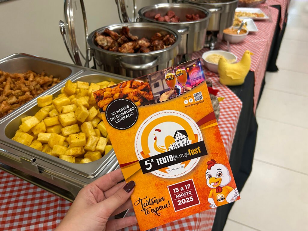 A Câmara de Indústria, Comércio e Serviços de Teutônia (CIC) realizou, nesta quinta-feira, 16 de maio, o evento de lançamento oficial da 5ª edição da Teutofrangofest. A solenidade, realizada na sede da entidade, reuniu autoridades, patrocinadores, imprensa e convidados, marcando o início da contagem regressiva para um dos principais eventos gastronômicos do Vale do Taquari, que acontecerá entre os dias 15 e 17 de agosto, na Associação dos Funcionários da Cooperativa Languiru.