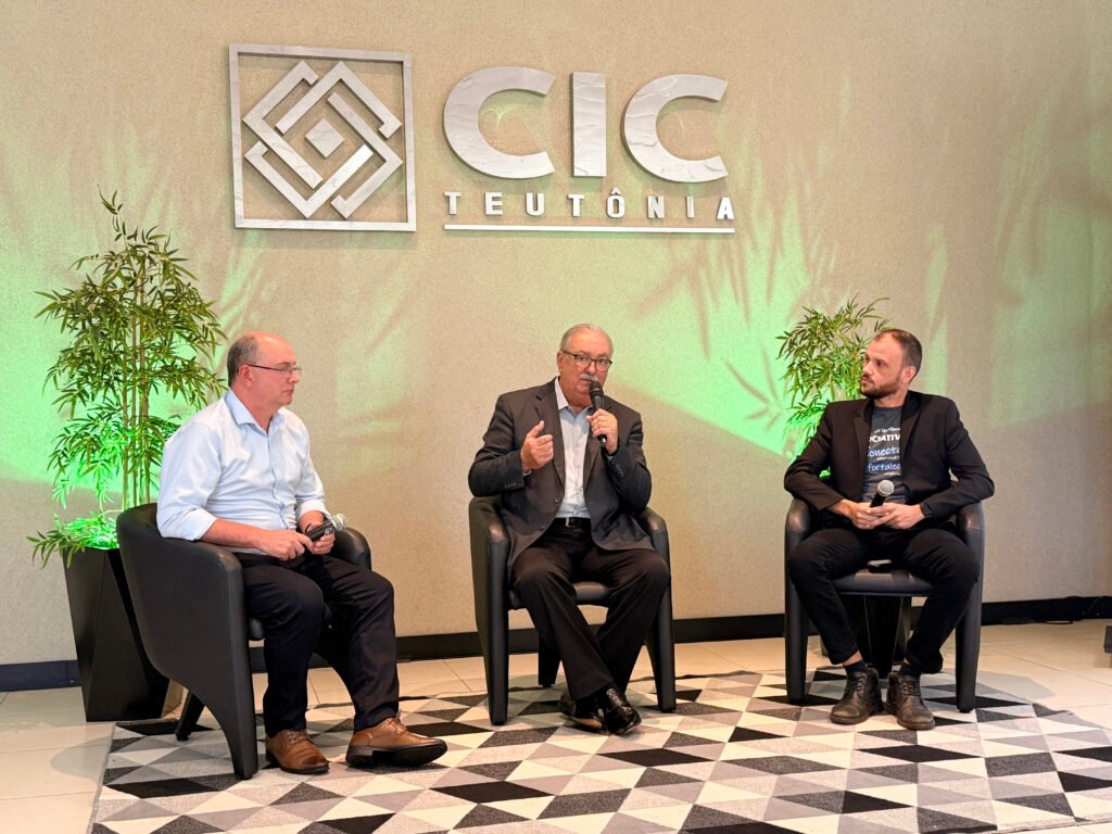 Após a palestra, o encontro teve um talk conduzido pelo presidente da CIC Teutônia, Jairo Sperotto, e pelo vice-presidente da Indústria, Diogo Dickel, abrindo espaço para perguntas e considerações finais. Entre os temas abordados, esteve a autossuficiência energética e como a Certel vem se preparando para esse cenário. Na resposta, Erineo destacou que a cooperativa já investe em energias renováveis, possui capacidade adicional de geração além do necessário e reforçou que, junto aos avanços técnicos, o foco nas pessoas segue sendo central para garantir qualidade e sustentabilidade no atendimento e na entrega dos serviços.